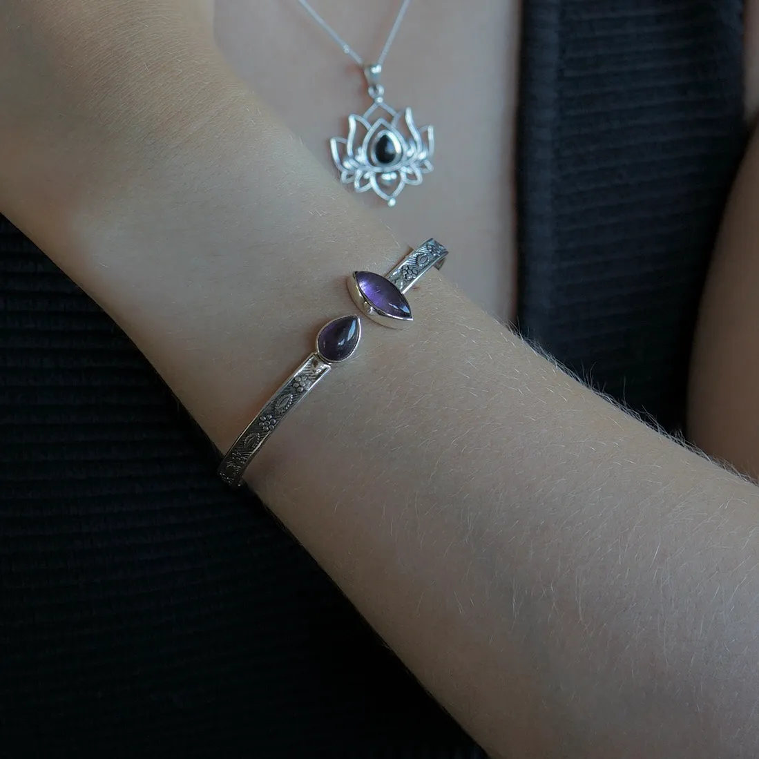 → Of bekijk bijpassende amethist sieraden of ontdek meer bangle armbanden