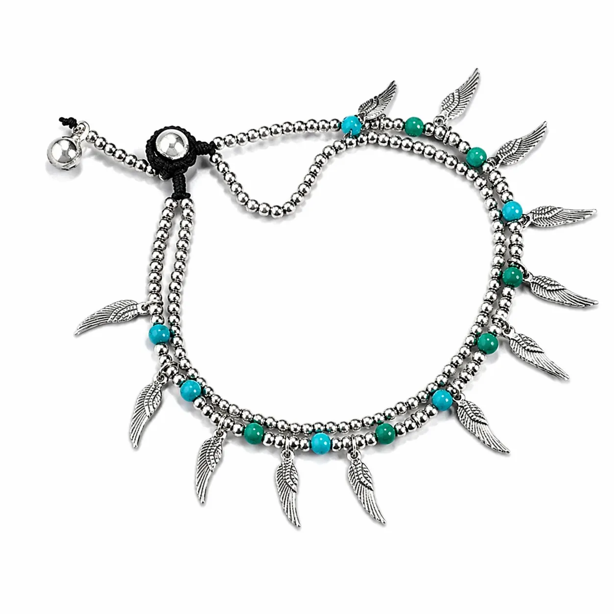 Angel wings enkelbandje met turquoise en groene kraaltjes als leuk accent.