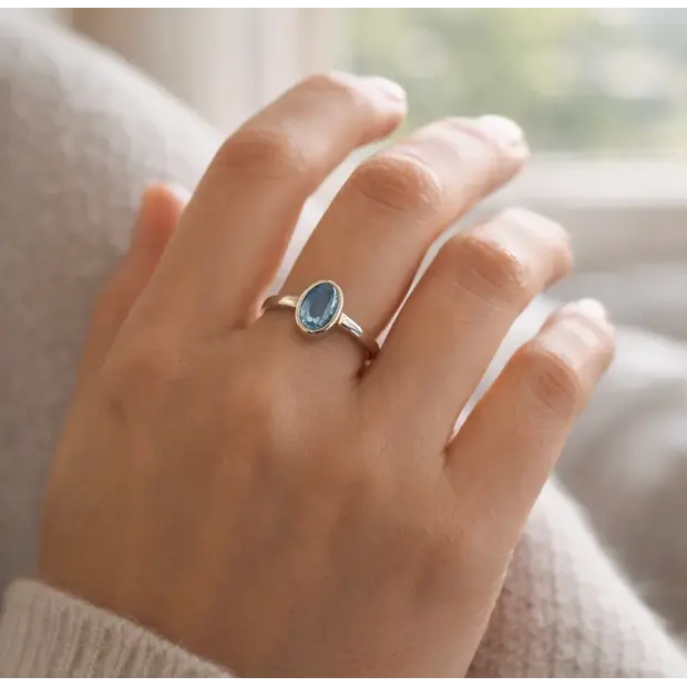 Voeg deze minimalistische ring met aquamarijn nu toe aan je collectie en ervaar de kracht van eenvoud.