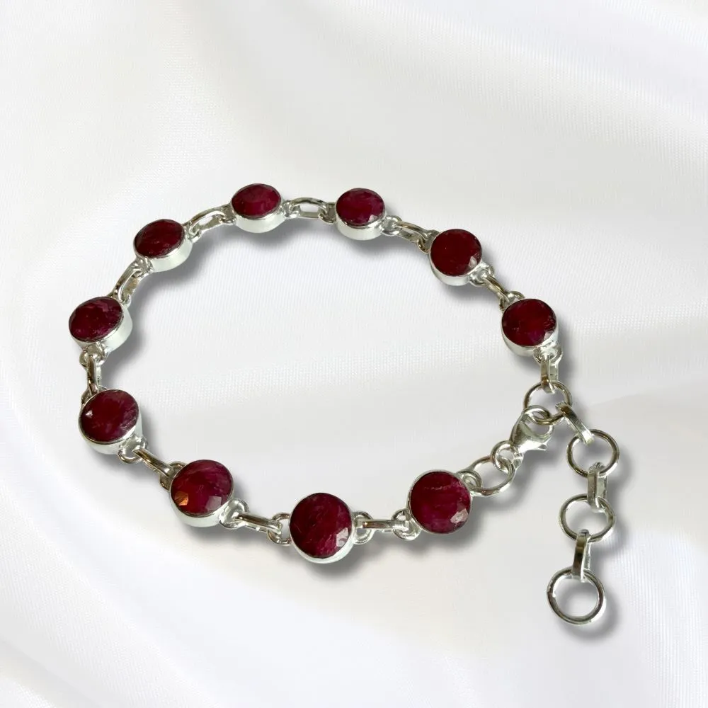 Laat je hart spreken met deze prachtige zilveren armband voor dames met korund robijn steentjes. Handgemaakt met liefde en oog voor detail, speciaal voor vrouwen die kracht willen combineren met zachtheid.
