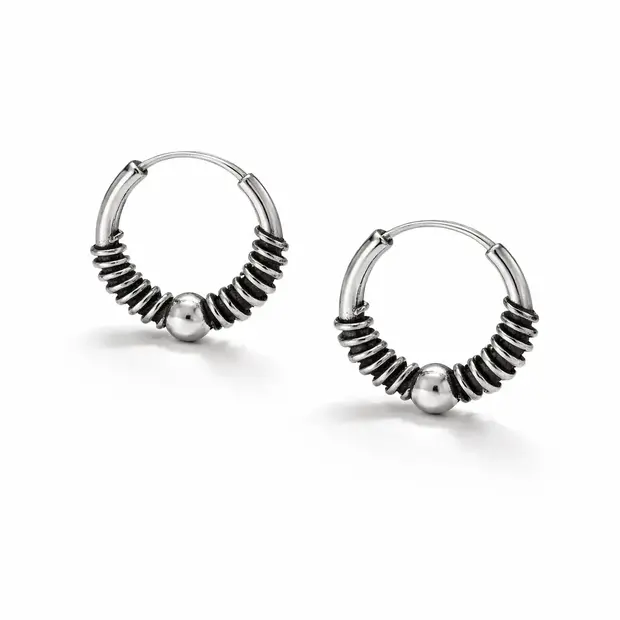 Hoe leuk zijn de hippe Bali hoop oorringetjes gemaakt van echt zilver?! Leuke kleine oorringetjes in Bali style, handgemaakt en super trendy. Je kunt ze combineren met andere oorbelletjes als je meerdere gaatjes in je oor hebt. Maak van je oren echte blikvangers!