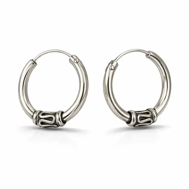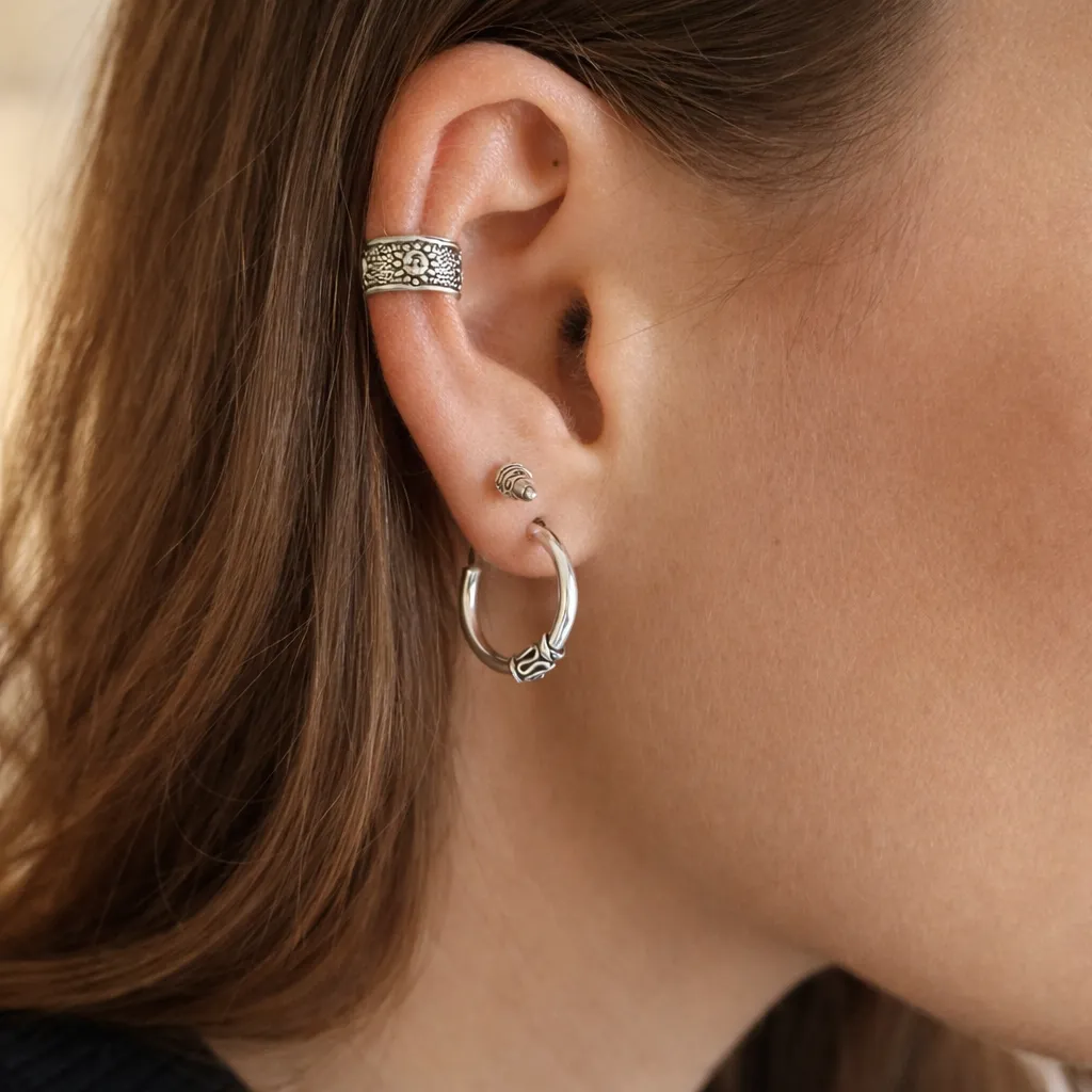 Combineer deze Bali hoops bijvoorbeeld met andere oorringen of studs uit onze collectie zilveren oorbellen voor een persoonlijke stijl.
