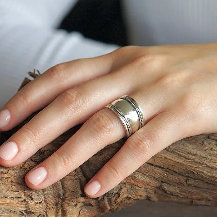 Brede Bali Ring Cela – Handgemaakt Statement Piece met Spirituele Touch