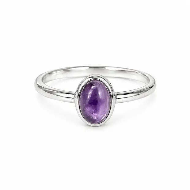 Amethist ring Piccola — minimalistische zilveren ring met ovale cabochon amethist
