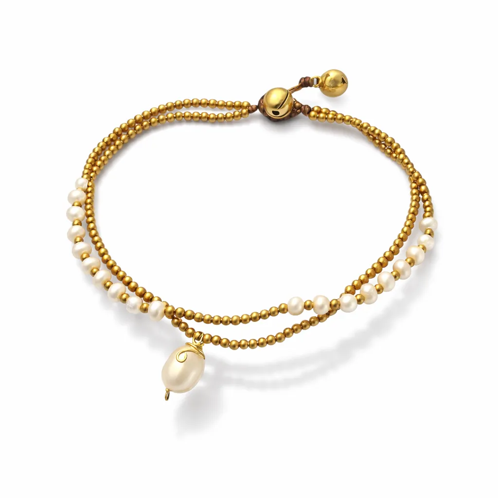 Dankzij de twee goudkleurige belletjes als sluiting draag je dit zoetwaterparel enkelbandje op zowel 24 cm als 26 cm — altijd comfortabel op de gewenste maat. Tip: meet je enkel op voor de beste pasvorm.