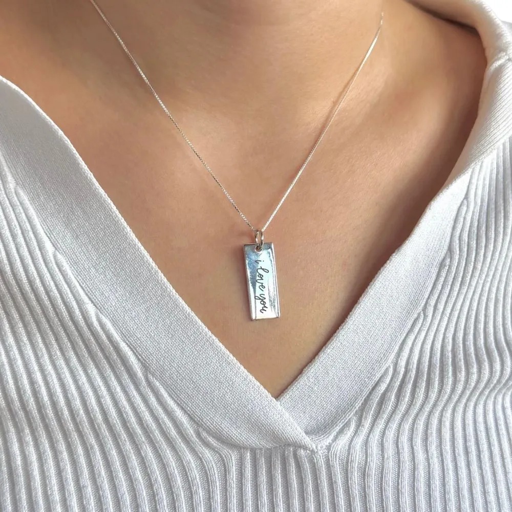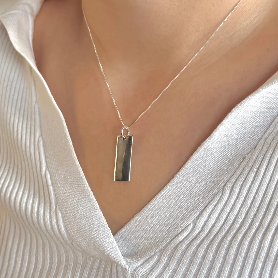 Simpel in vorm, maar groots in betekenis. Deze zilveren flat bar hanger is gemaakt voor wie op zoek is naar een minimalistisch sieraad met een persoonlijk verhaal. Laat er een naam, datum, coördinaten of korte quote op graveren – of kies voor iets écht unieks zoals een handgeschreven woord of handtekening. Denk aan het eerste woordje van je kind, of de sierlijke handtekening van je oma: een tastbare herinnering die je altijd bij je draagt.