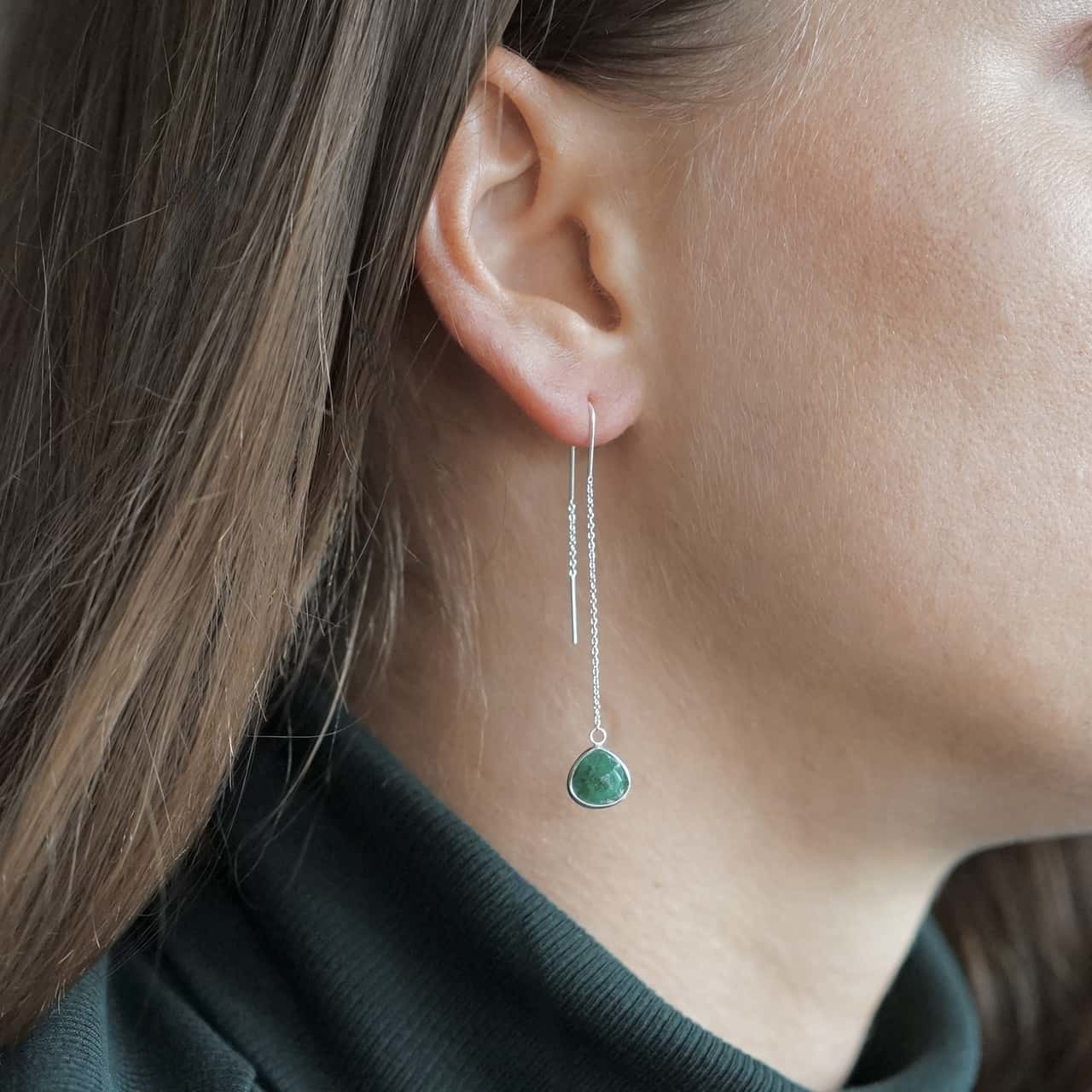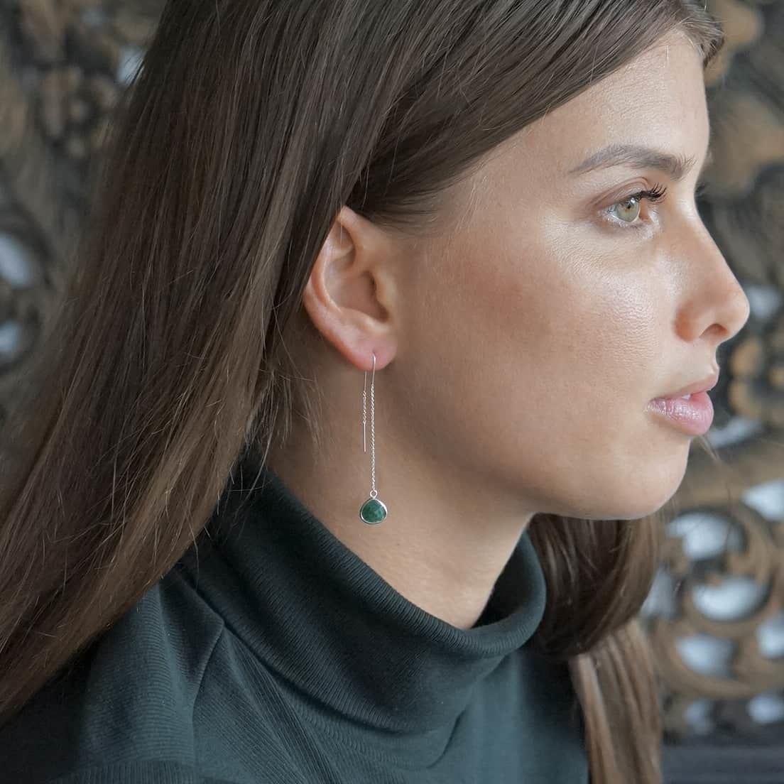 Super hippe ear threader met een mooie druppelvormige groene onyx steen. De doortrekoorbel is dé trend van dit jaar.