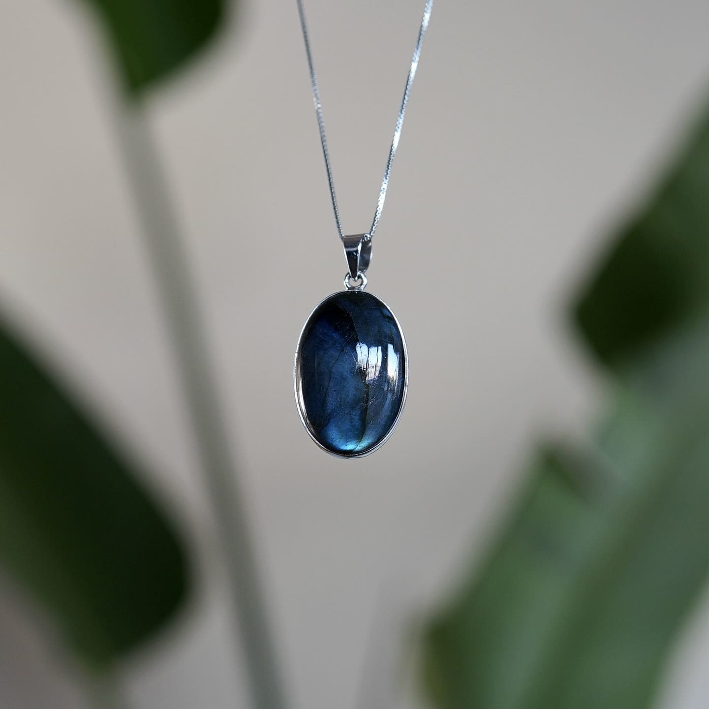 Laat jouw stijl stralen met de handgemaakte hanger Nira — een unieke labradoriet hanger die elke outfit een magische touch geeft. Deze prachtige hanger is met de hand vervaardigd van 925 sterling zilver en voorzien van een bijzondere labradoriet edelsteen die een prachtige schakering van blauw, groen en goud onthult.