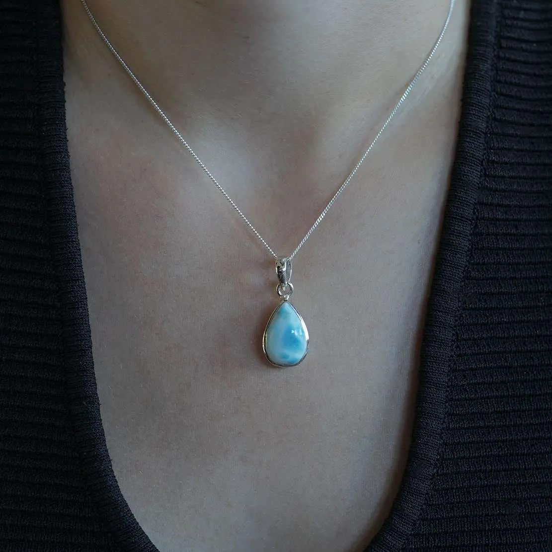 Larimar is een zeldzame edelsteen die alleen wordt gevonden in de Dominicaanse Republiek. De blauw-witte tinten doen denken aan de Caribische zee en staan symbool voor rust, zachtheid en vrouwelijke energie.