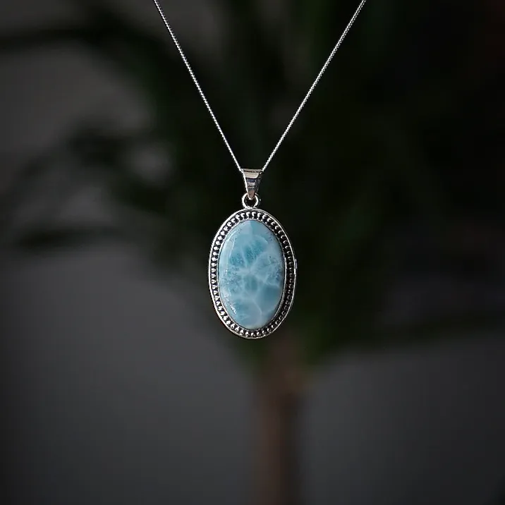 Ovale larimar hanger – Handgemaakt & vol betekenis