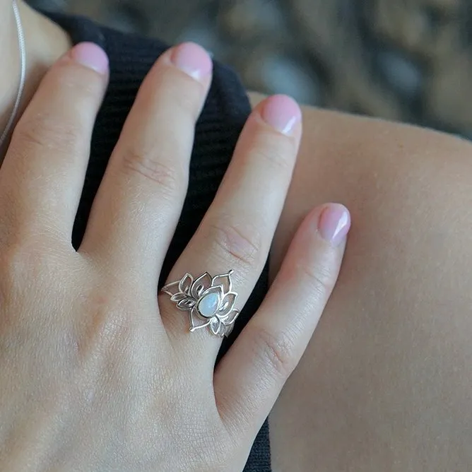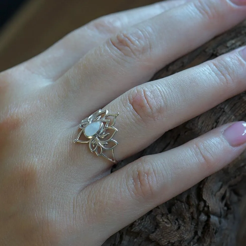 Maansteen ring Lotus – Edelsteen ring voor vrouwelijke kracht en innerlijke wijsheid