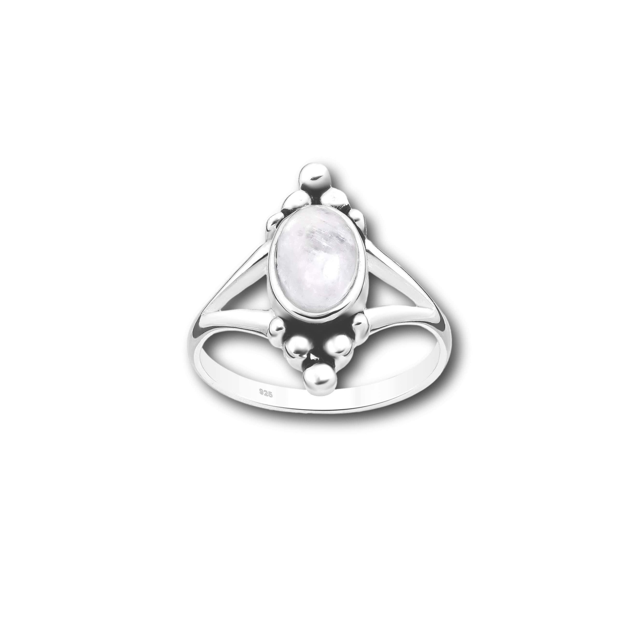 De natuurlijke glans van de maansteen vangt het licht op een dromerige manier – elk exemplaar is uniek. Draag haar solo voor een minimalistische uitstraling of combineer met andere zilveren ringen voor een persoonlijke twist.