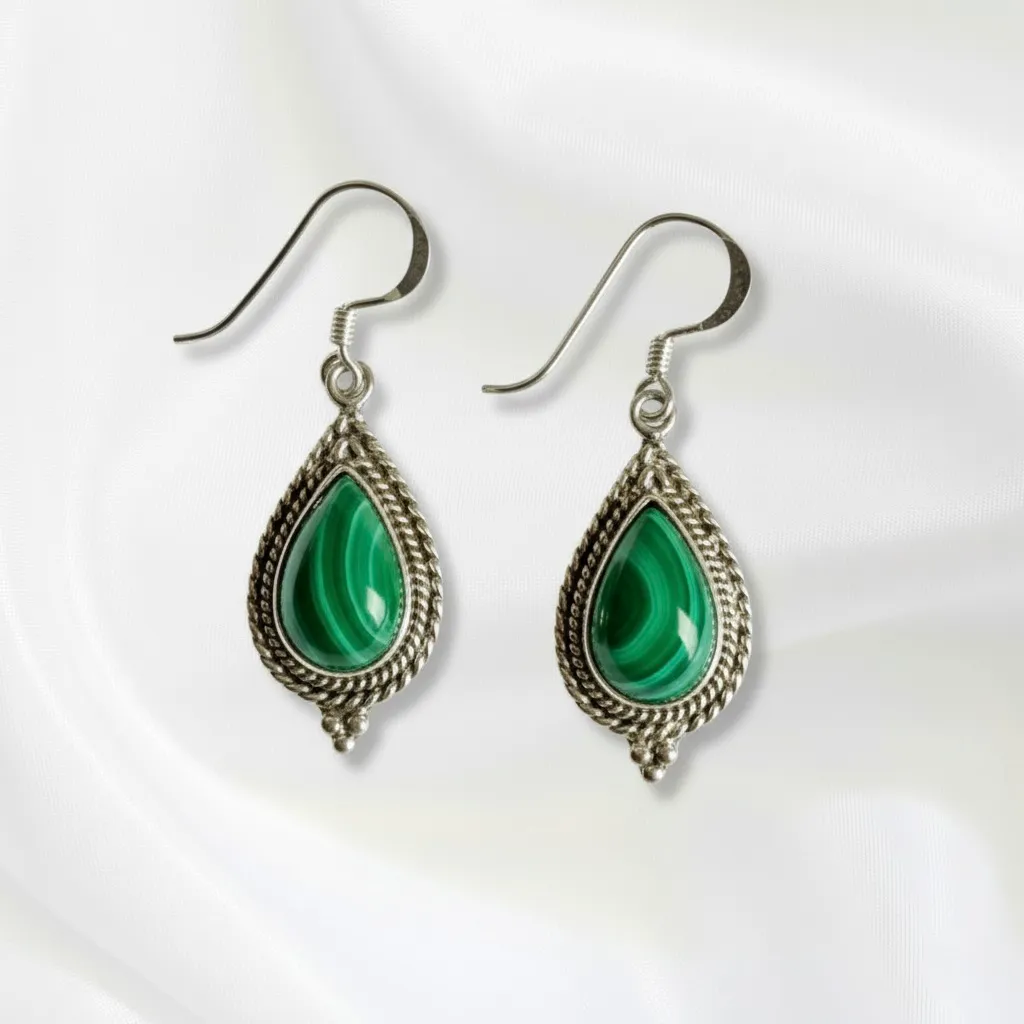 Een krachtige groene glans met een diepere betekenis – de malachiet oorbellen Branami zijn handgemaakte sieraden voor wie schoonheid en innerlijke groei wil combineren. Deze elegante druppelvormige oorbellen zijn gezet in 925 zilver en bevatten natuurlijke malachiet: een steen die volgens de Edelstenen Gids staat voor transformatie, emotionele heling en bescherming.