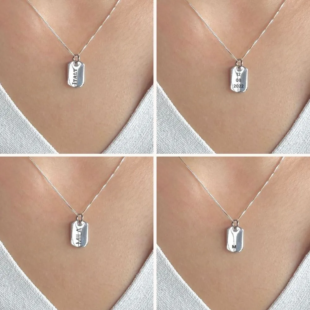 Simpel, stijlvol en vol symboliek: deze Mini Dog Tag ketting is klein van formaat, maar groots in verhaal. De subtiele, zilveren hanger is volledig te personaliseren met een gravure naar jouw keuze – van initialen tot een icoon, datum, sterrenbeeld, geboortebloem, vingerafdruk of naam die voor jou iets betekent. Zelfs een handgetekend hartje of woordje is mogelijk.