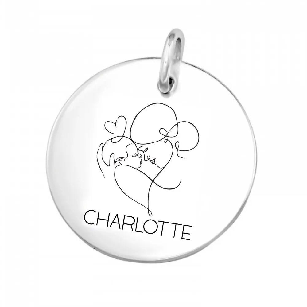 Een nieuw leven, een onbreekbare band – en een sieraad dat dit voor altijd vastlegt. Deze ronde zilveren hanger toont een liefdevolle gravure van moeder en kind, een tijdloos symbool van verbinding. Voeg er de naam van de baby aan toe, of een geboortedatum, voor een blijvend en persoonlijk aandenken aan een bijzonder moment.