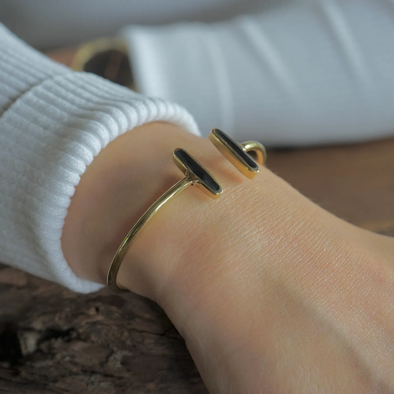 Goudkleurige bangle met zwarte onyx – elegant & krachtig