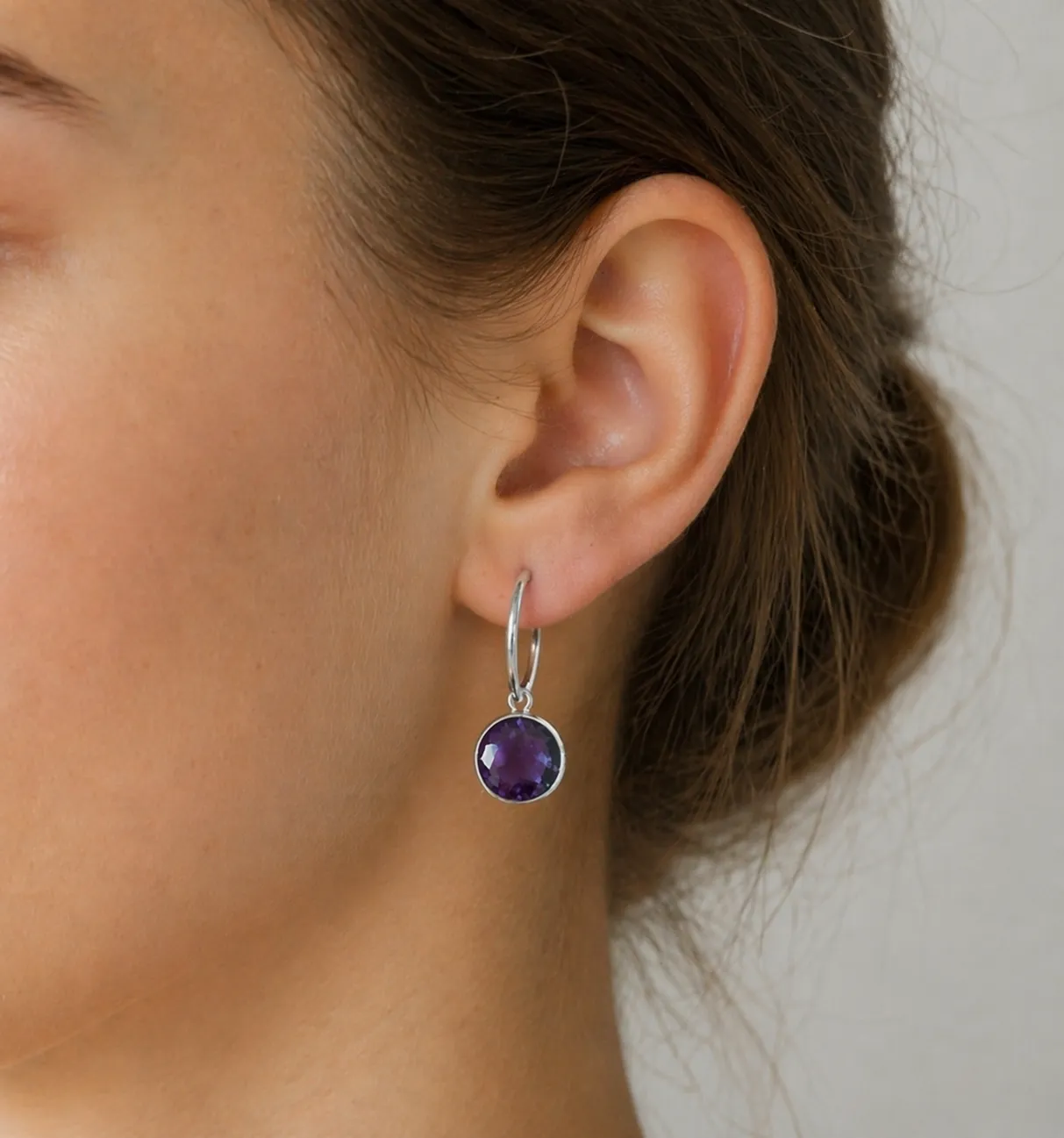Deze oorbedel van amethist geeft je hoop oorbellen een elegante en verfijnde uitstraling. Dankzij het minimalistische ontwerp past deze oorbedel perfect bij zowel kleine als grote oorringen.