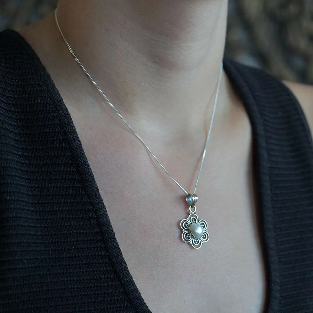 Elke parel is uniek en straalt rust, zuiverheid en vrouwelijke energie uit. In veel culturen worden natuurlijke parels gezien als symbool voor wijsheid, intuïtie en balans – ideaal dus als betekenisvol cadeau aan jezelf of een dierbare. De bloemvormige hanger voegt een vleugje zachtheid toe aan je look, of je nu kiest voor een casual outfit of een feestelijke gelegenheid.