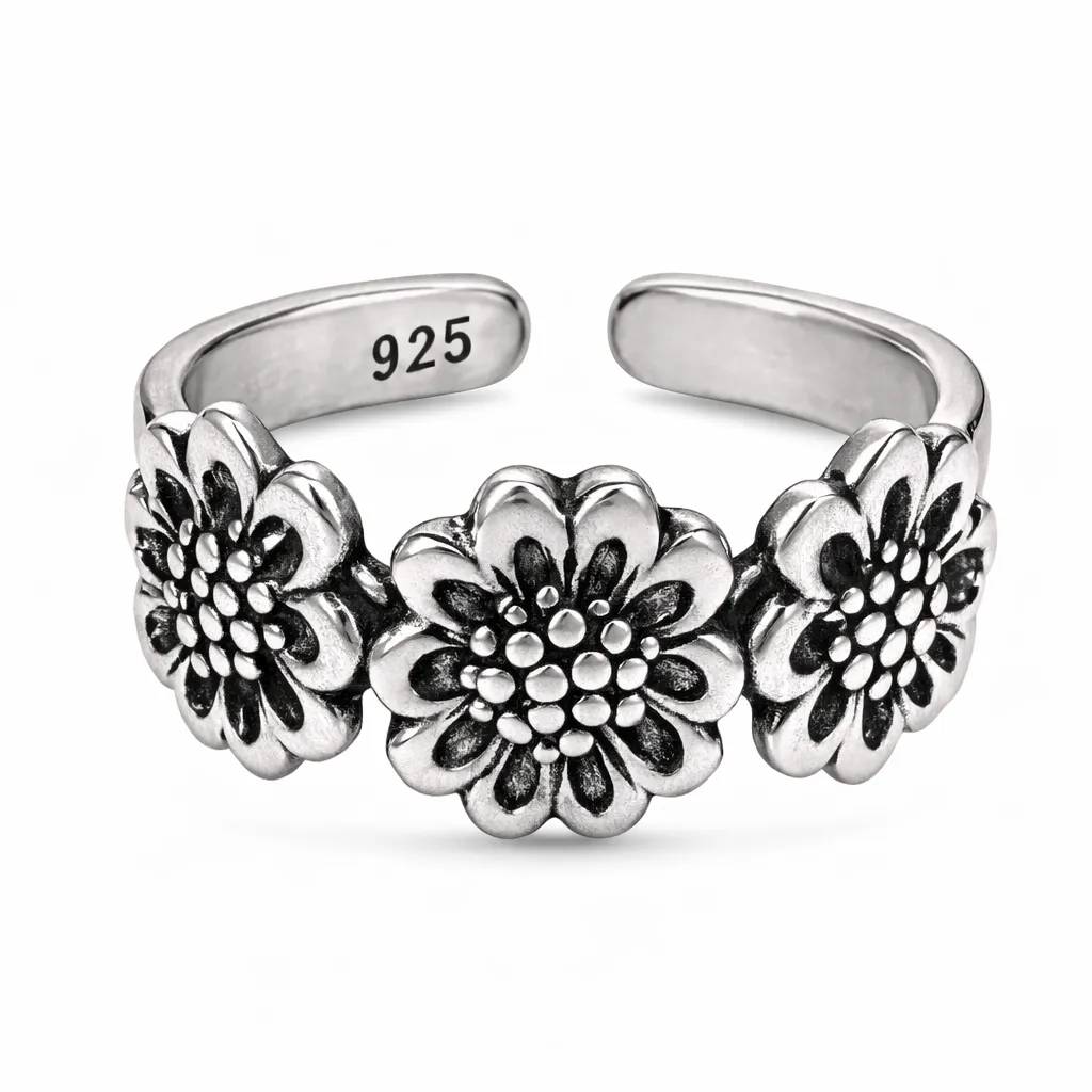 Mooi ringetje met 3 schitterende bloemetjes