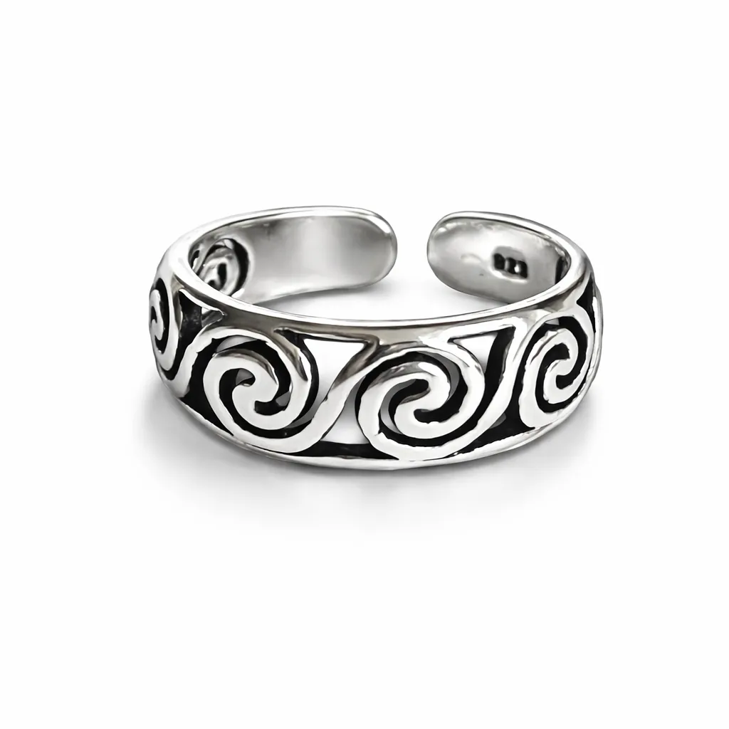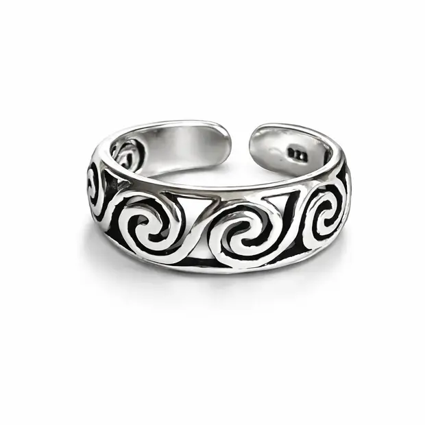 Mooie robuuste zilveren teenring met wave motief, voor de oceaan en surf dudes en babes! Gemaakt van echt zilver, dus je kunt hem gewoon omhouden als je gaat zwemmen.