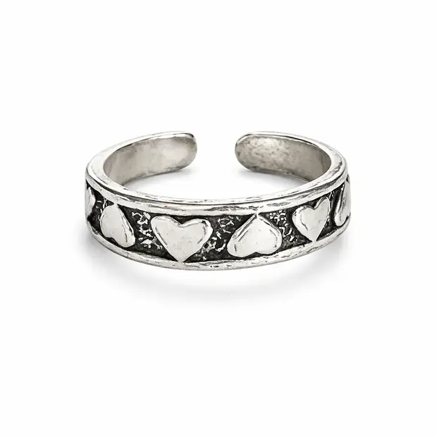 Mooie robuuste zilveren teenring met lieve hartjes. Gemaakt van echt zilver.