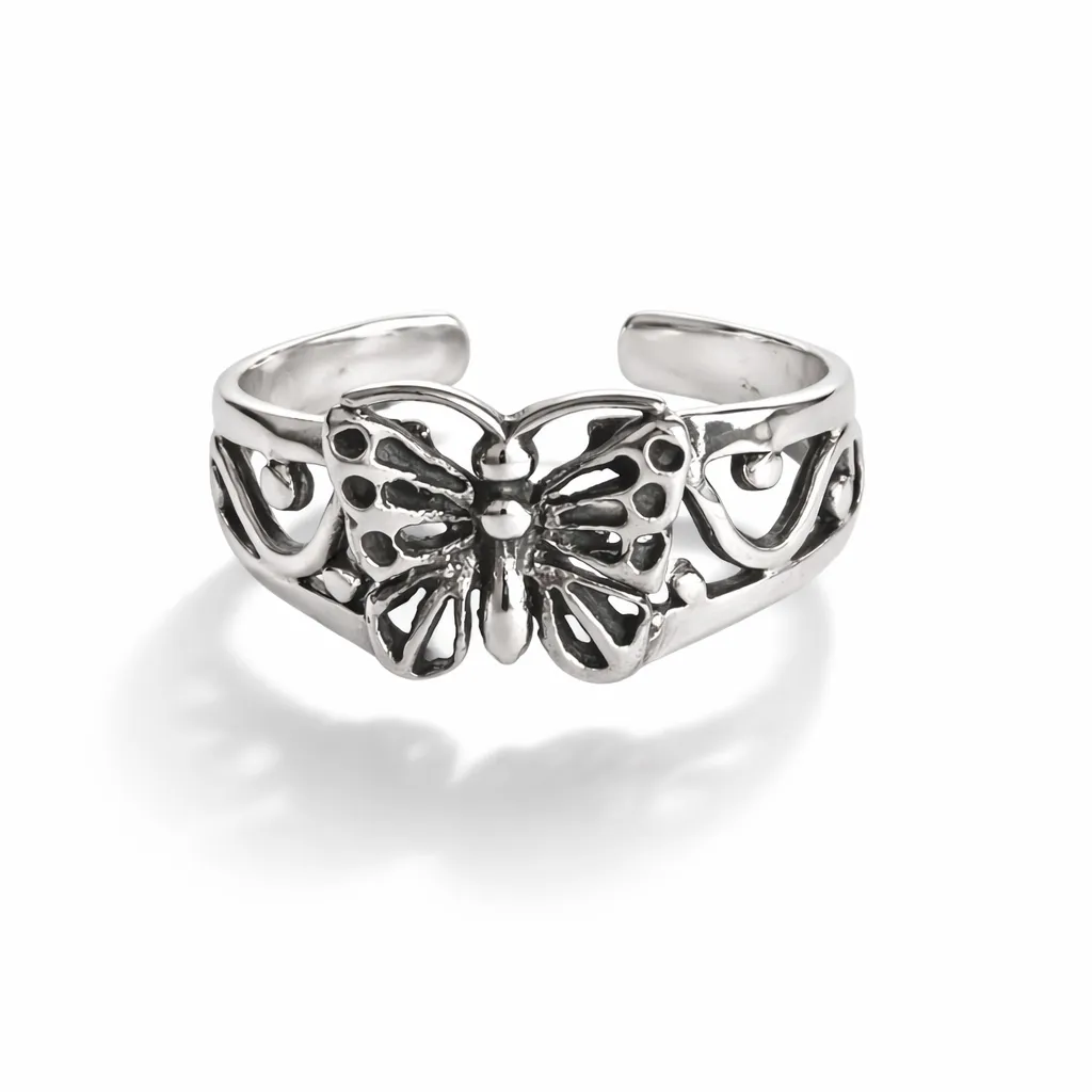 Mooie sierlijke zilveren teenring met een lief vlindertje. Gemaakt van echt zilver.