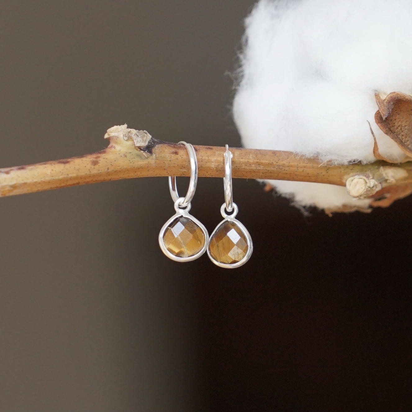 Zilveren hoop oorringetjes met tiger-eye oorring bedel. Deze oorringetjes zijn heel mooi te combineren met onze andere Tiger Eye sieraden