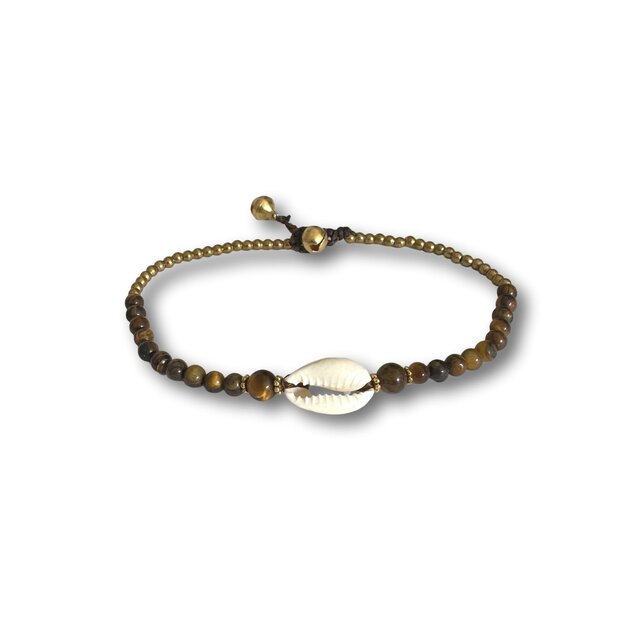 Tijgeroog enkelbandje met schelp