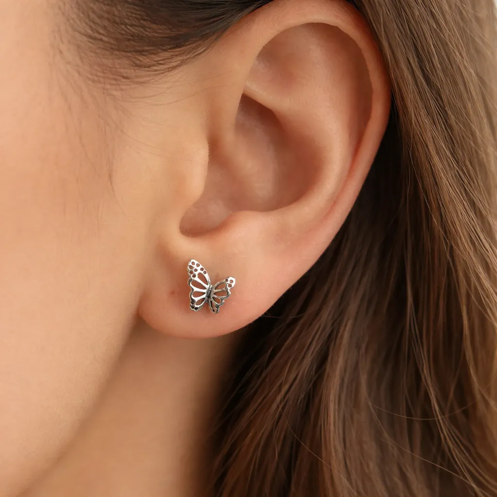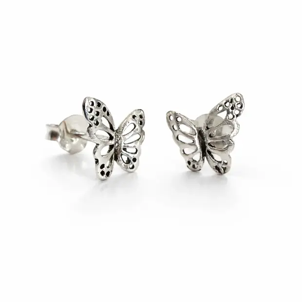 Zilveren oorknopjes met lieve vlindertjes. De vlinder staat symbool voor de transformatie. De vlinder is immers eerst een rups, dan een pop en daarna pas een vlinder. De vlinder is teer en leeft maar kort, en wordt daardoor ook gezien als de onsterfelijke ziel van een kortstondig leven.