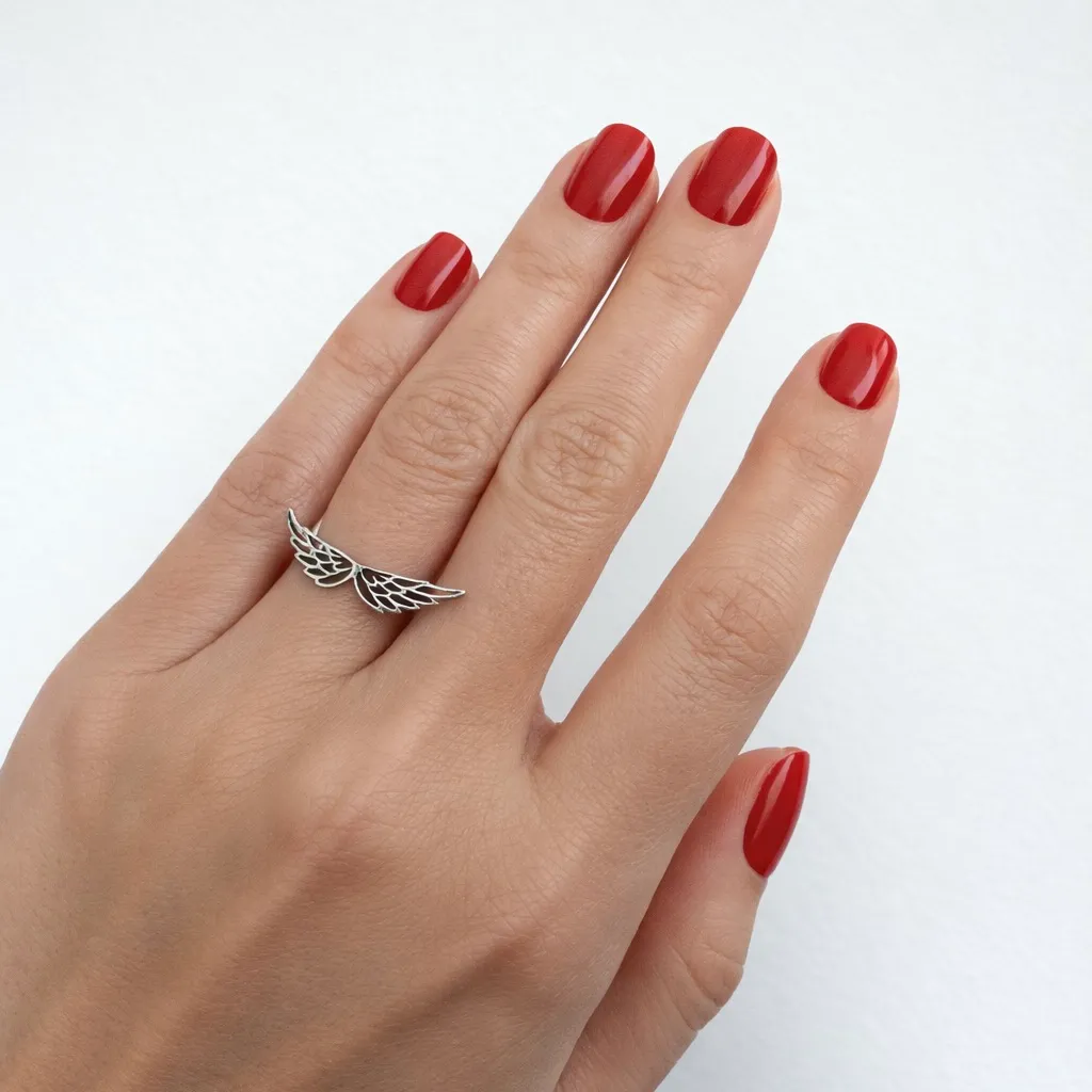 Deze engelenvleugel ring is een subtiel en betekenisvol sieraad dat je elke dag kunt dragen. De verfijnde vleugel staat symbool voor bescherming, liefde en vertrouwen. Mooi om jezelf te schenken of cadeau te geven. Tijdloos, stijlvol en met zorg afgewerkt. Bestel vandaag nog en draag haar kracht dichtbij.