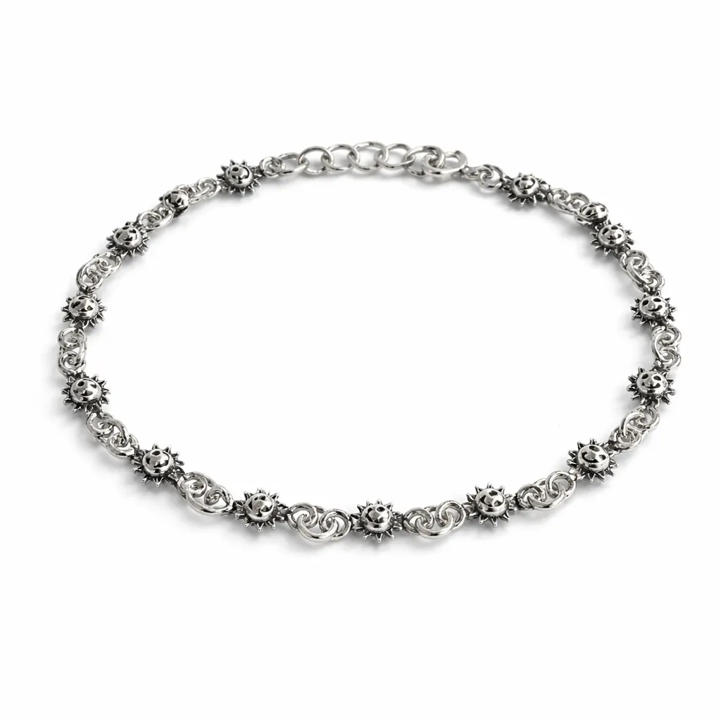 De zilveren armband met zonnetjes is een verfijnde en speelse armband van 925 sterling zilver. De kleine zonnetjes geven dit sieraad een lichte, vrolijke uitstraling en maken het een subtiele eyecatcher om elke dag te dragen.