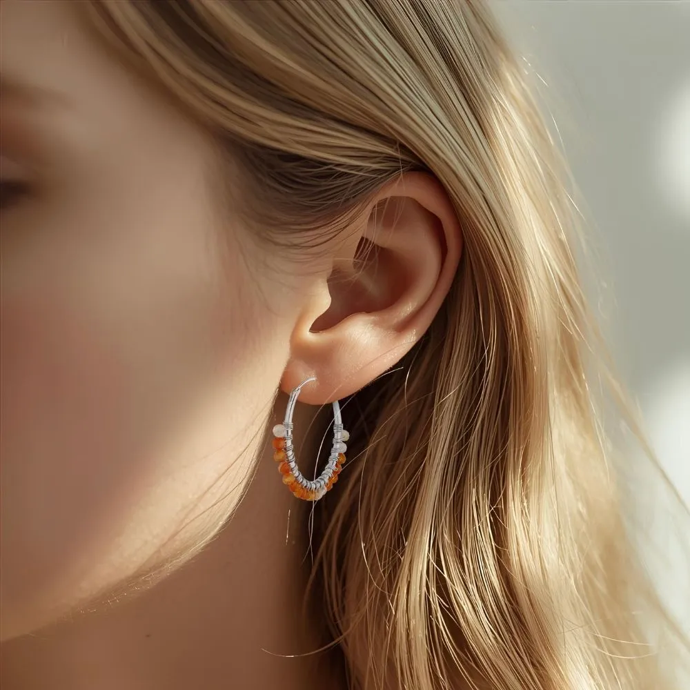 Hoop oorbellen met abrikoosagaat – zachte energie in een krachtig ontwerp